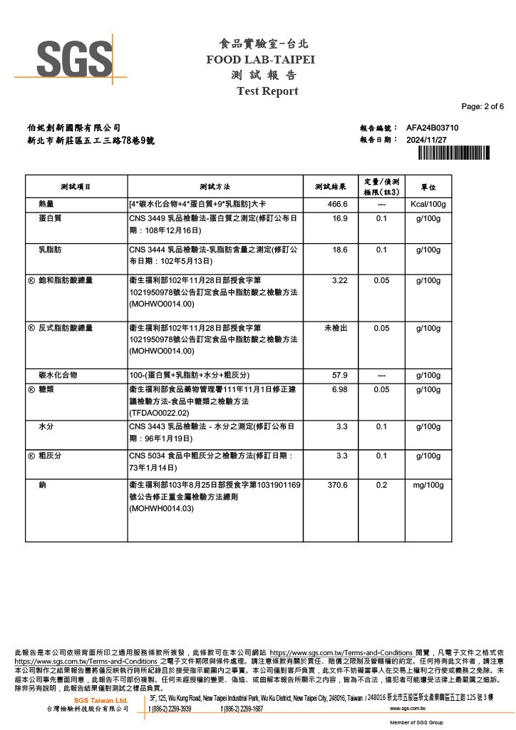 蛋白質:來自美國非基因改造大豆分離蛋白(ISP)、酪蛋白和濃縮乳清蛋白(WPC)。